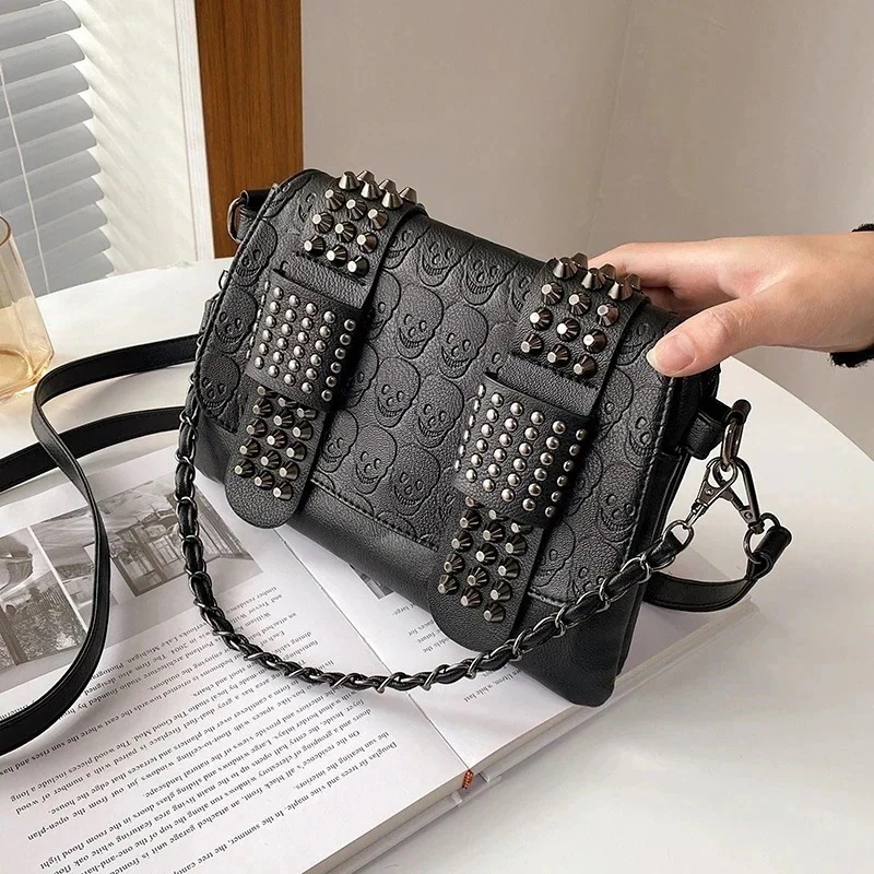新作 おすすめ 洋風バッグ レディース リベット スカルバッグ ハンドバッグ おしゃれ 洋風ショルダーバッグ 斜めがけバッグ ハンドバッグ30%制限
