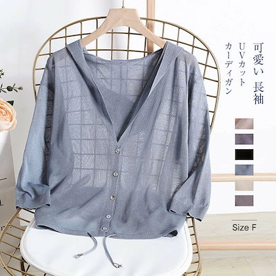 ニット カーディガン レディース カーデ ショート丈 サマーニット フード付き 大きいサイズ 長袖 冷房対策 オフィス 薄手 Vネック トッパー トップス 羽織り UV対策 紫外線対策 無地 夏 ブル