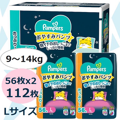パンパース【コストコ】 パンパース おやすみパンツ L (9~14kg) 56枚 x 2 計112枚 ケース販売 ビッグサイズ 子供用オムツパンツタイプ パンパースおやすみパンツ 14時間安心