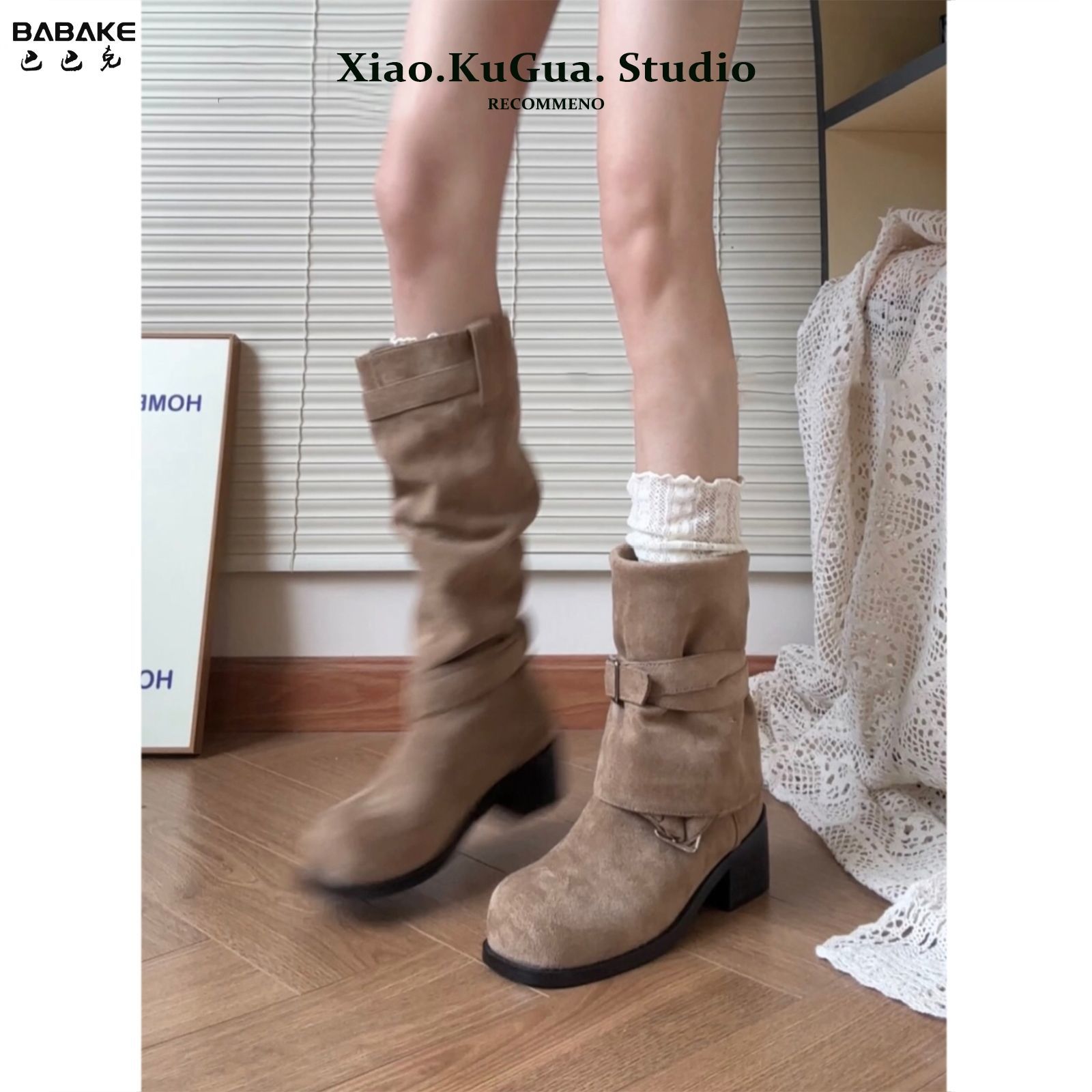 韓国ファッション ロングブーツ ギャザースタッズブーツレディース厚底ブーツ2024秋の新作ウエスタンブーツハイヒールナイトブーツ