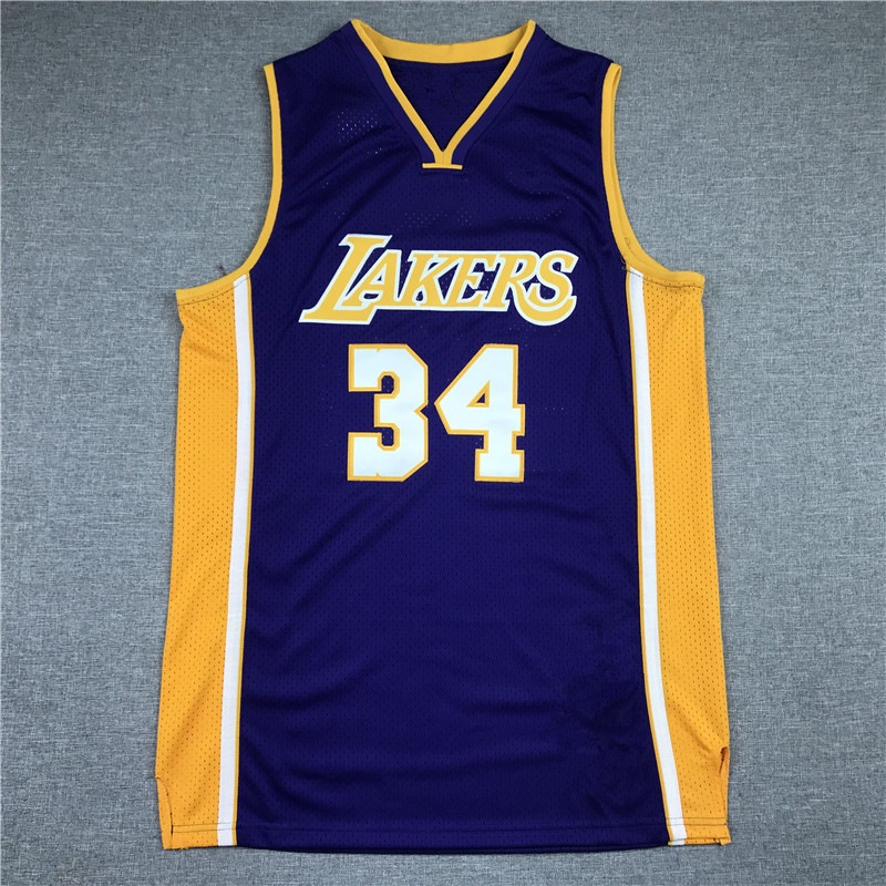 刺繍バスケジャージ 34 番 オニール イエロー紫 V ネック ONEAL LAKERS BASKETBALL JERSEY