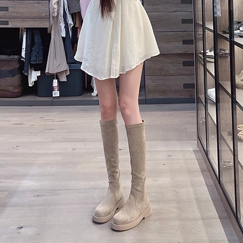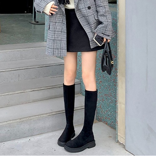 韓国ファッション ロングブーツ ナイトブーツレディース2024厚底新作秋冬ギャザー厚底ストレッチスリムブーツ