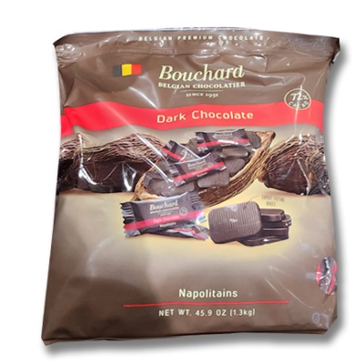 | 材料/素材 | ダークチョコナポリテイン ココアマス69.5%、砂糖、低脂肪ココア粉末3%、ひまわりレシチン ダークミルクキャラメルソルト チョコレート砂糖、ココアバター17.3%、ココアマス14.8%、全脂粉ミルク13.73%、ブドウ糖シロップ、乳クリーム0.79%、天日塩0.63%、バター、脂肪粉ミルク0.3%、レシチン、香料(バニラの香り) | ||