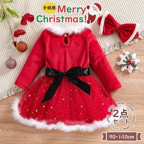 【クリスマス】子供服 クリスマス コスプレ 2点セット サンタ 衣装 ヘアバンド付き サンタクロース コスチューム ワンピース キッズ こども用 赤ちゃん 子供用 女の子 男の子 パーティー 可愛い