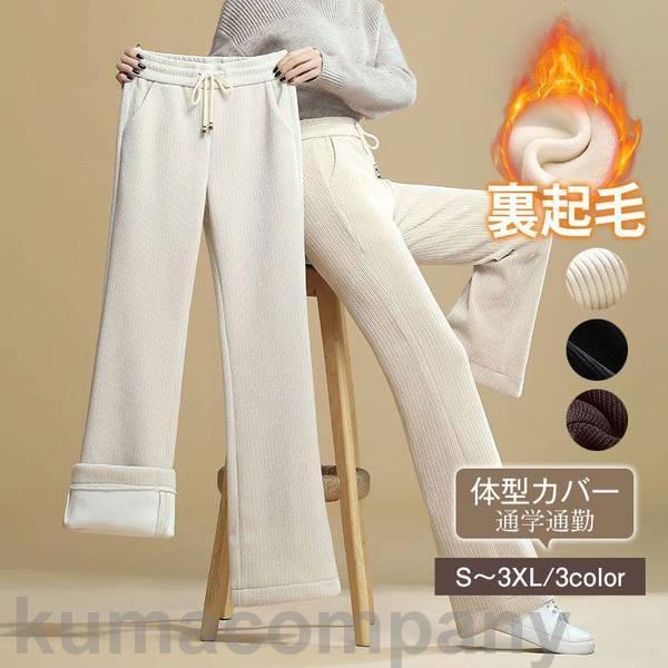 パンツ レディース 裏起毛 リブ ズボン リブパンツ ボトムス ロング 裏ボア ンプル 大人可愛い 無地 楽ちん お家 ストレスフリー