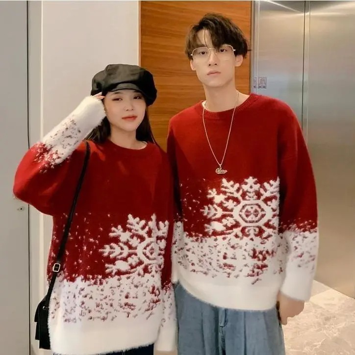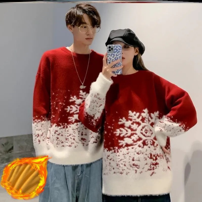 2024新作クリスマスレッドセーター女性の外着ゆったりデザインの気だるい風のかわいいニットトップス 男女兼用トップス