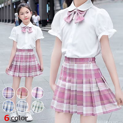 子供服 女の子 セットアップ スーツセット シャツ ブラウス プリーツスカート チェック柄 リボン 半袖 おしゃれ ガールズ スクール制服 卒園式 入園式 学生服 JK 卒業式 スーツ 卒服 フォーマ