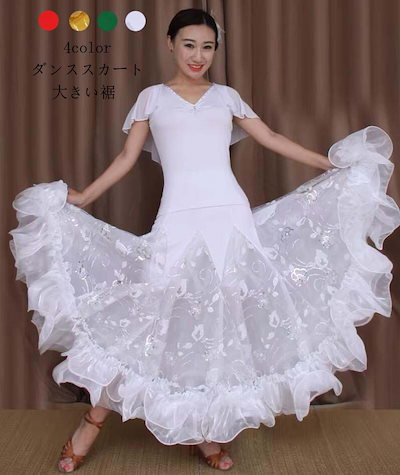 4color 大きい裾 ダンススカート 広がる モダンダンス 社交ダンス タンゴ ワルツ スカート 舞台 団体演出服 発表会 イベント 演奏会 大きいサイズ S M L XL XXL XXXL