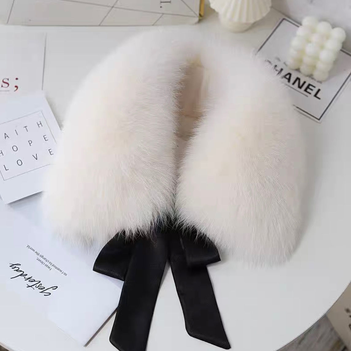 暖かいファーマフラー ファー襟 ふわふわマフラー ストール 選べ6色 保温対策 毛皮マフラー リボン付き オシャレファーマフラー