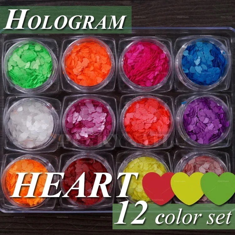 12色セット ハート ホログラム ネイルアート 必需アイテム 薄型な ネイル/アート アクセサリー/ネイルパーツ/スタッズ/ネイル激安用品/ジェルネイル