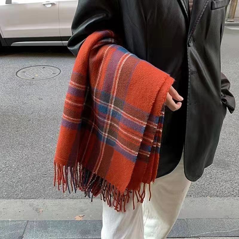 マフラー 大判ストール チェック ウールタッチ 大判なめらかストール ロングマフラー マフラー レディース メンズ 防寒 可愛い