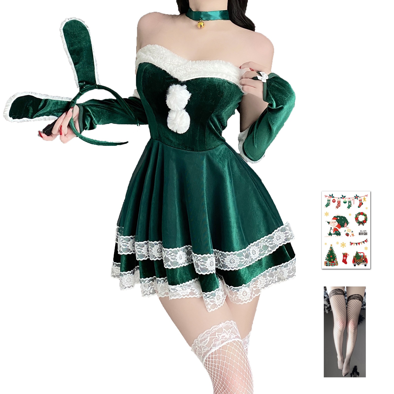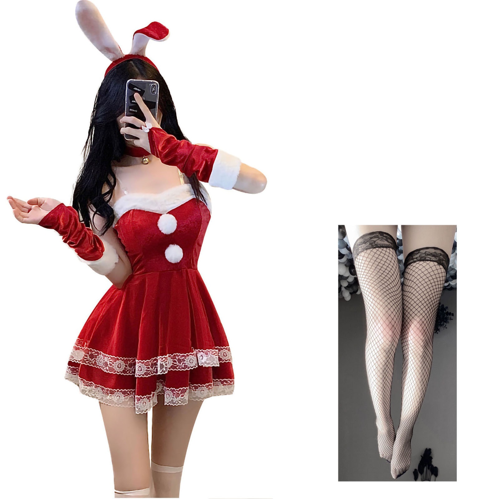 既納 クリスマスコスプレ コスチューム ドレス レディース 5点セット 仮装 ワンピース パーティードレス ウサギ かわいい クリスマス衣装 サンタコス サンタクロース 演出服 パーティー プレゼント
