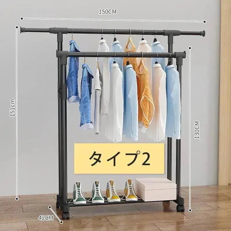 2025福袋ハンガーラック 頑丈 伸縮 衣類収納 キャスター付き パイプハンガーラック 洋服収納 洋服掛けラック コートハンガー コンパクト収納 部屋干し 梅雨対策33761795