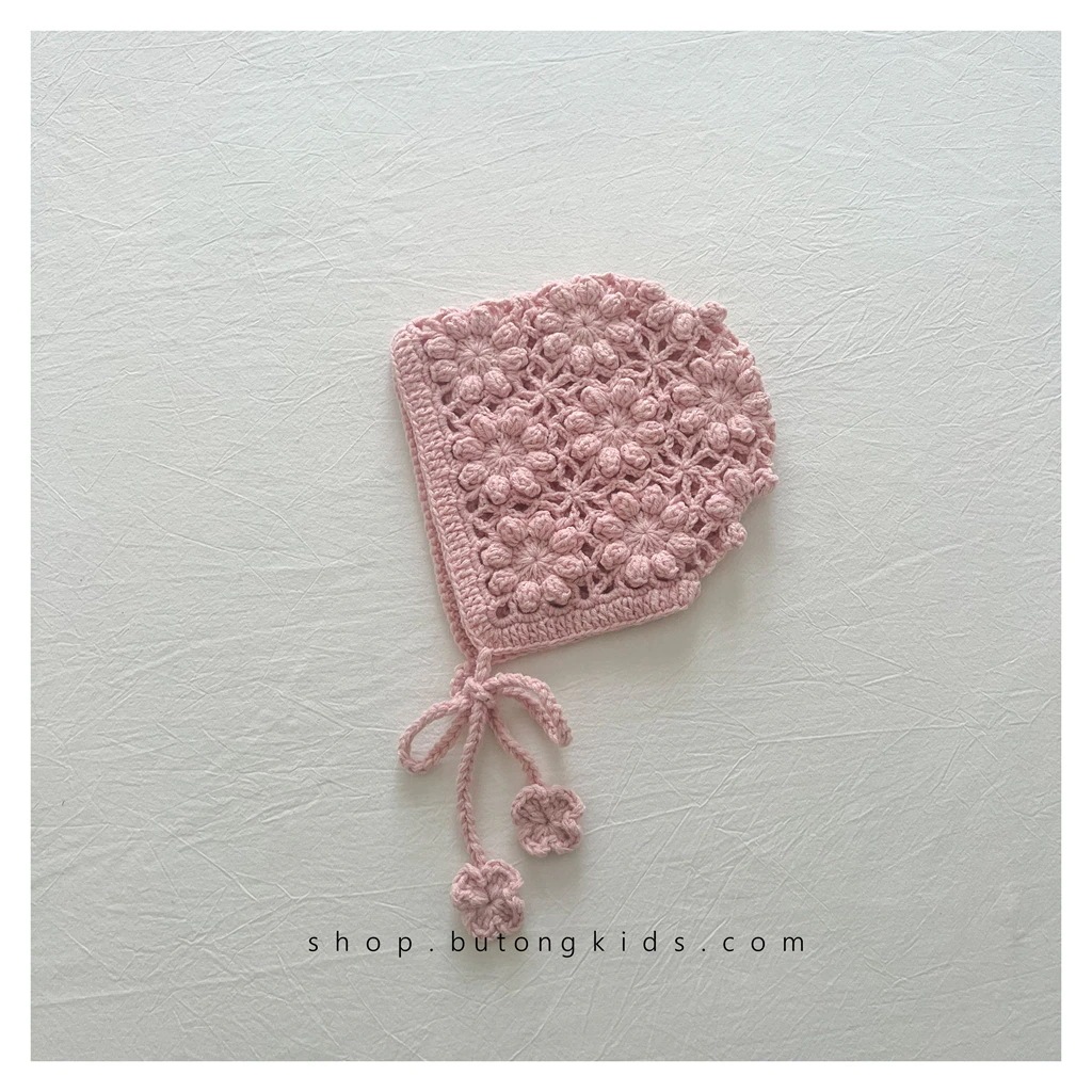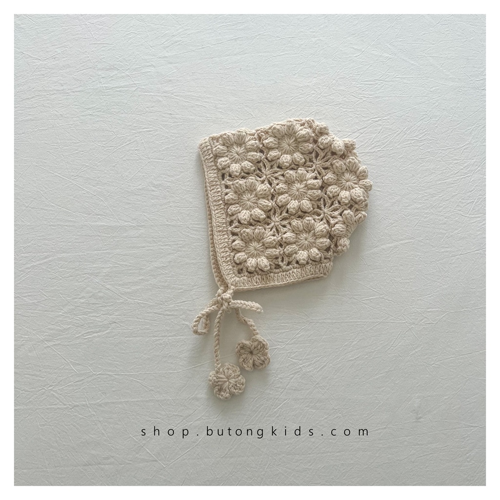 赤ちゃんの透かし編み毛糸帽子 秋冬子供の可愛い花のニット耳保護帽子