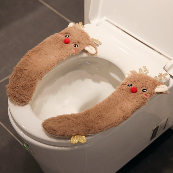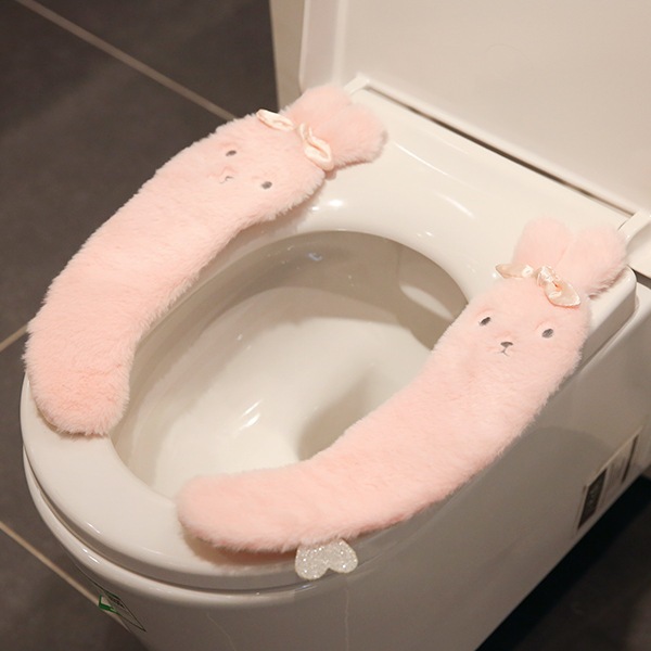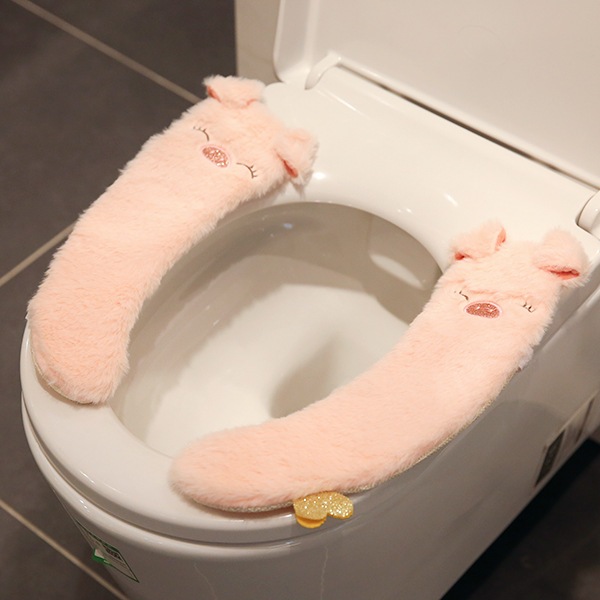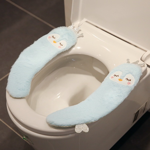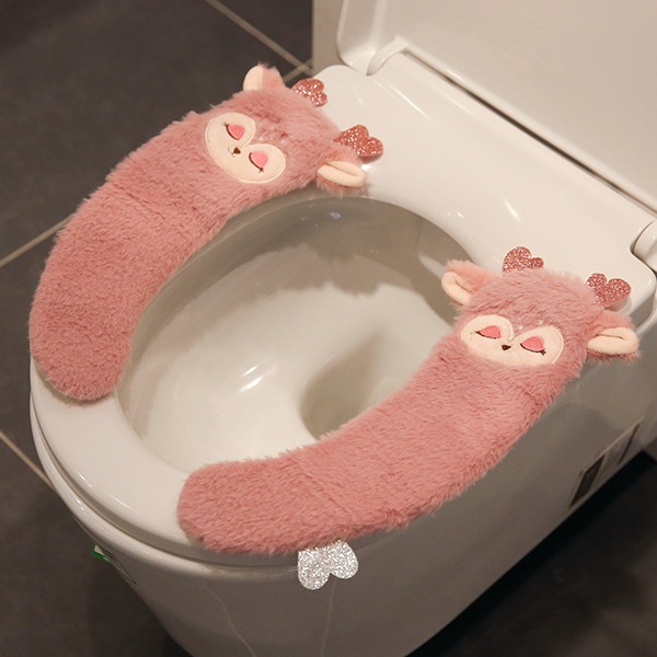 かわいい漫画トイレマットホーム防水ユニバーサルベルクロぬいぐるみトイレマット冬暖かい便座クッション