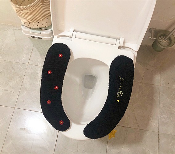 [卸売] かわいい小さな赤い花のトイレマット冬トイレカバーぬいぐるみ粘着便座トイレカバー