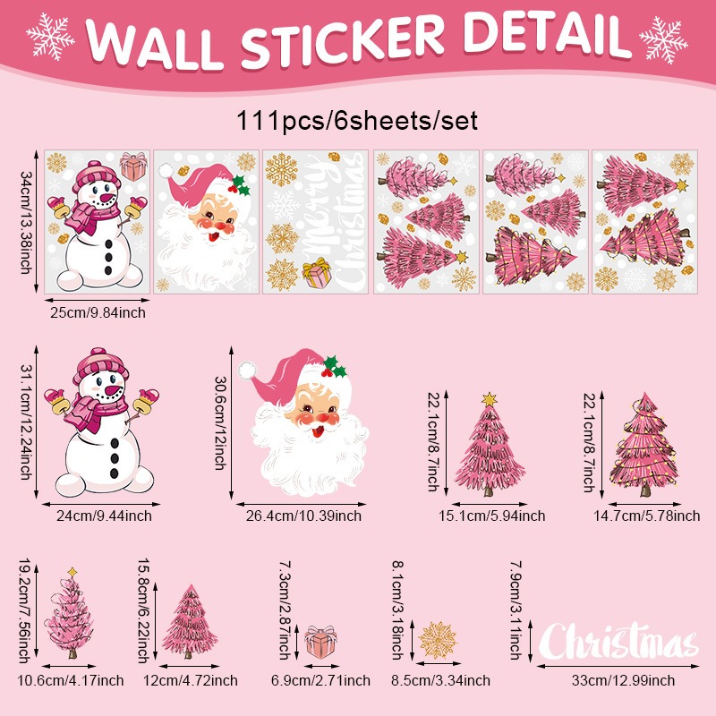国境を越えた新しいクリスマス装飾ウォールステッカーピンクサンタクロース雪だるまクリスマスツリーステッカー雰囲気冷蔵庫ステッカー