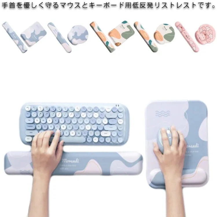 リストレスト マウスパッド キーボード用 2点セット 低反発 手首クッション 手首サポート 疲労軽減 柔らかい 滑り止め オフィス ノートパソコン PC用