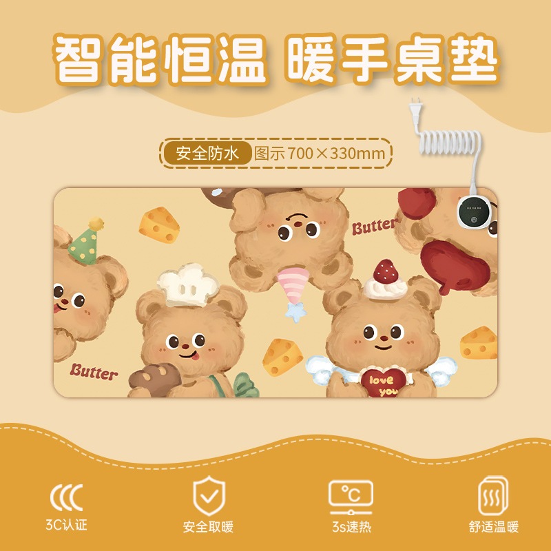 バタークマ加熱マウスパッドオフィス急速加熱テーブルパッド子供の学習電気加熱パッドかわいい温暖化テーブルパッド
