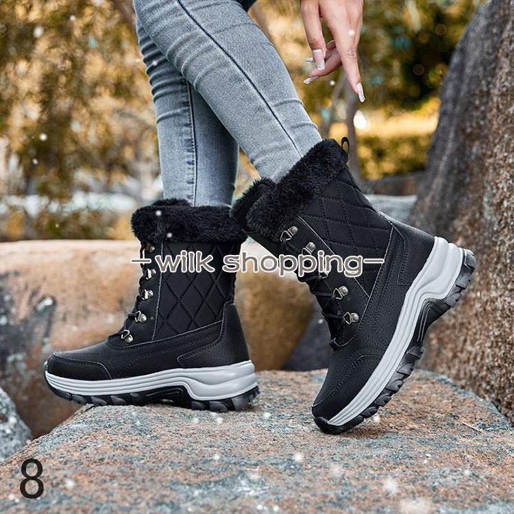 スノーブーツ レディース 大人 カジュアル 防滑 防水 雪遊び 裏起毛 ブーツ 靴 裏ボア 防寒 ムートンブーツ 旅行 冬靴 プレゼント 23-26cm スノーブーツ