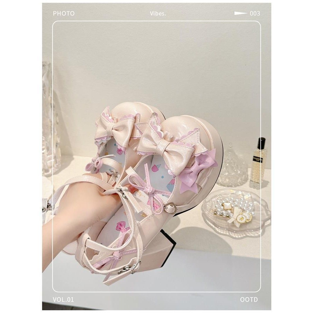 ロリータシューズ ハイヒール 新作オリジナルロリータ丸首ロリータシューズキュートで甘い革靴日系シングルハイヒール