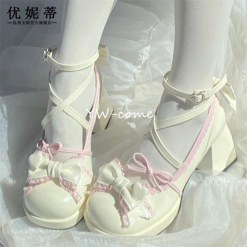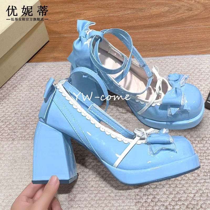 ロリータシューズ ハイヒール 少女ソフト萌オリジナルトレンド防水ロリータリボン可愛いロリータ日系ドーパミンシングルシューズ