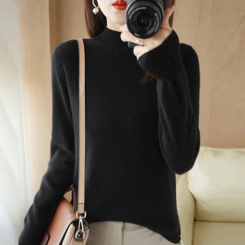 人気なリブニット ハイネック ベ一シックニット プルオーバーデザイン 無地 ゆったり セーター スリミング 着痩せ レディース トップス