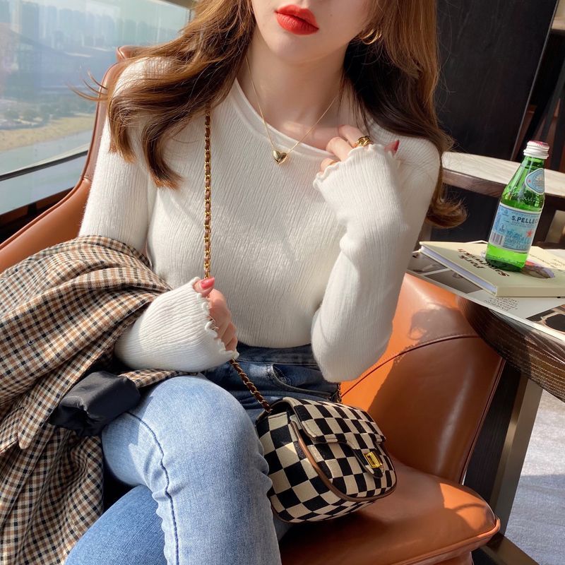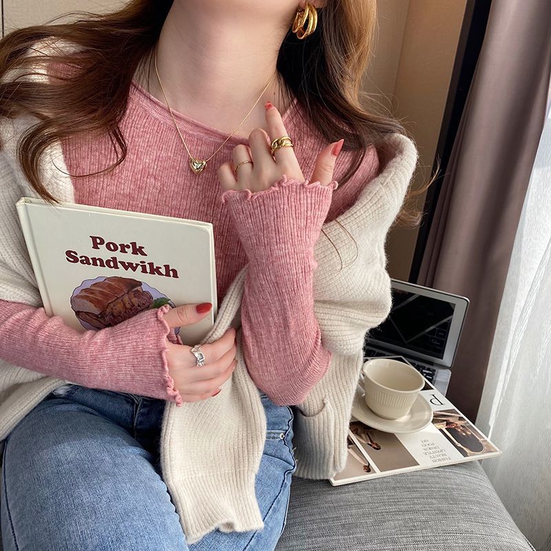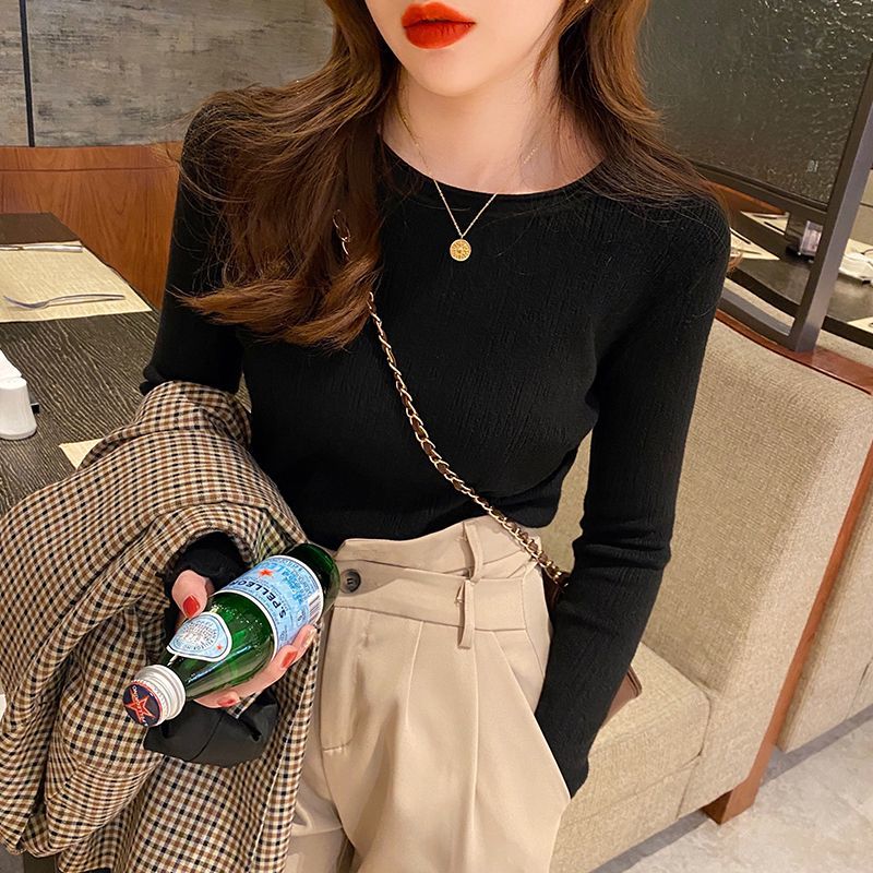 人気なリブニット Tシャツカットソー ベーシックニット おしゃれ アンダーウェア レディース 長袖 秋 スリミング ラウンドネック セーター インナー トップス