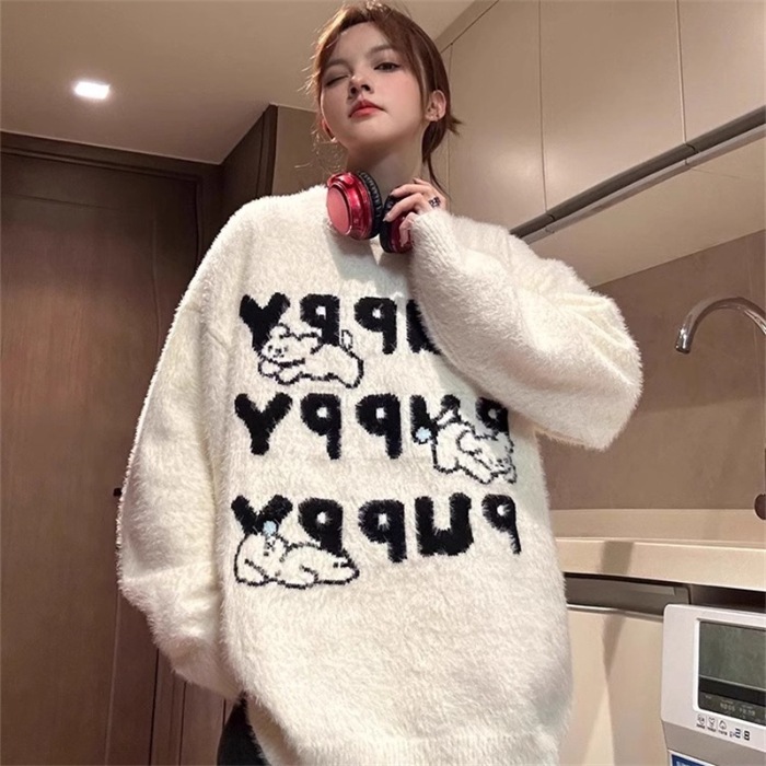 日本のレトロな漫画の柔らかくてかわいいウサギのセーター女性のための秋と冬の新しいアウターウェアルーズニットセータートップファッション