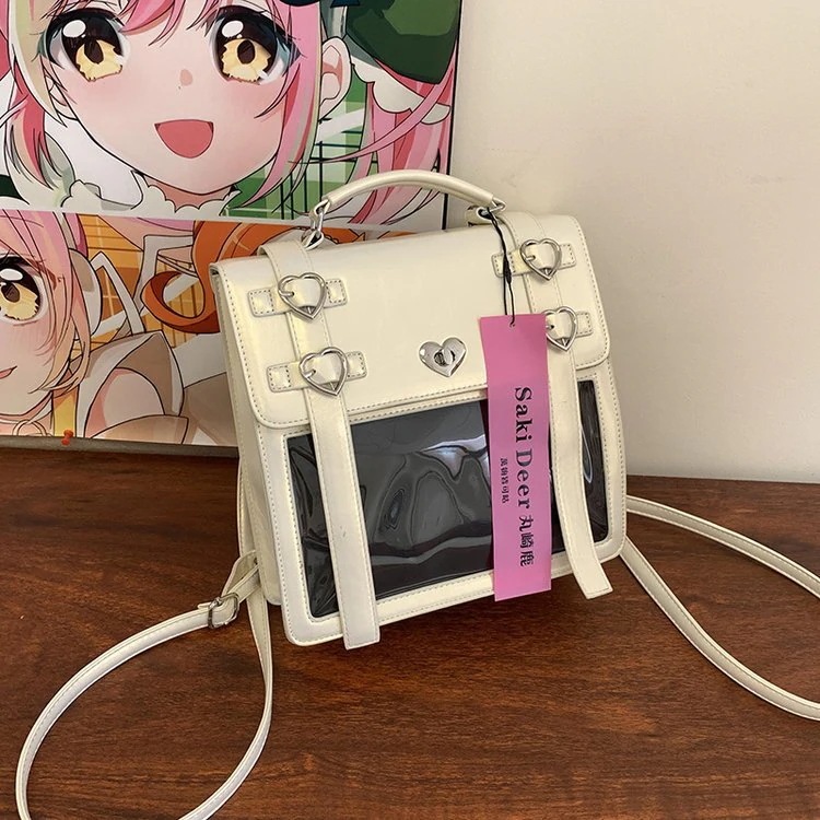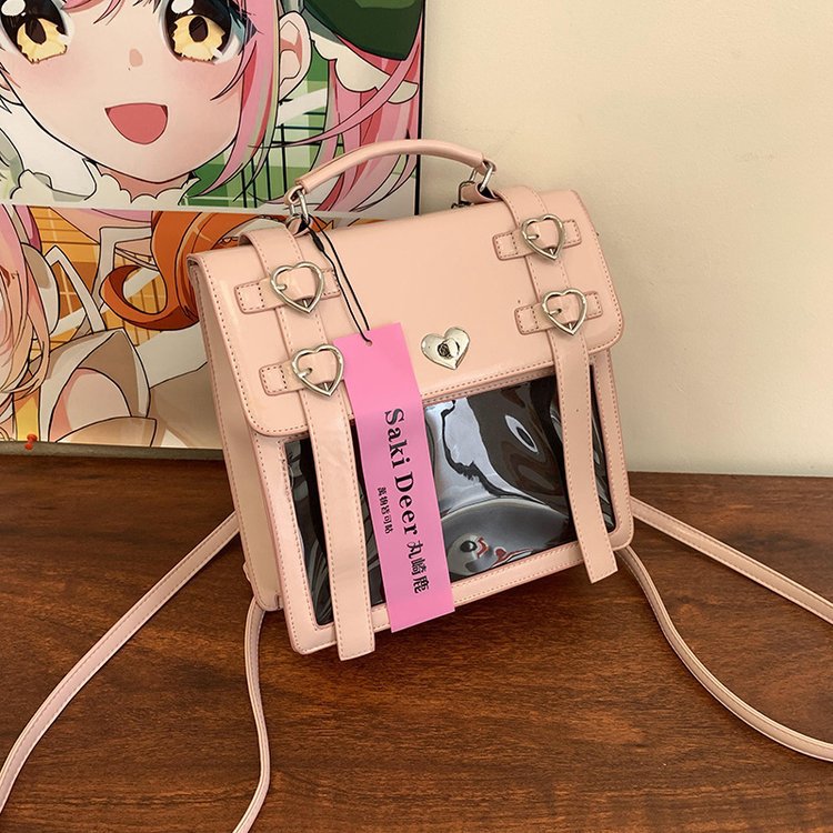 今すぐ欲しい!バックパック透明ダブルショルダーペインバッグ女性シングルショルダークロスボディバッグバービーバッグ女性