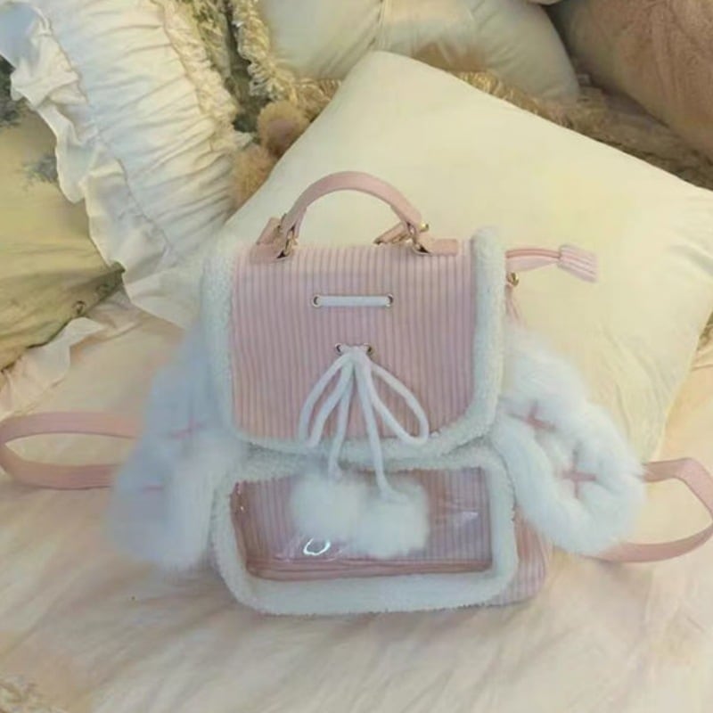今すぐ欲しい!バックパック2025秋と冬のかわいいぬいぐるみショルダーバッグピンクのウサギの耳大容量ペインバッグ