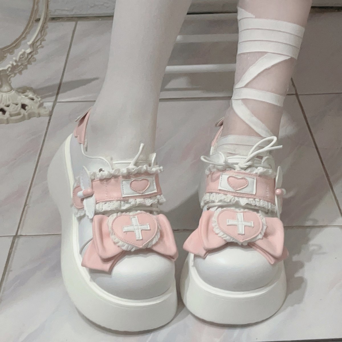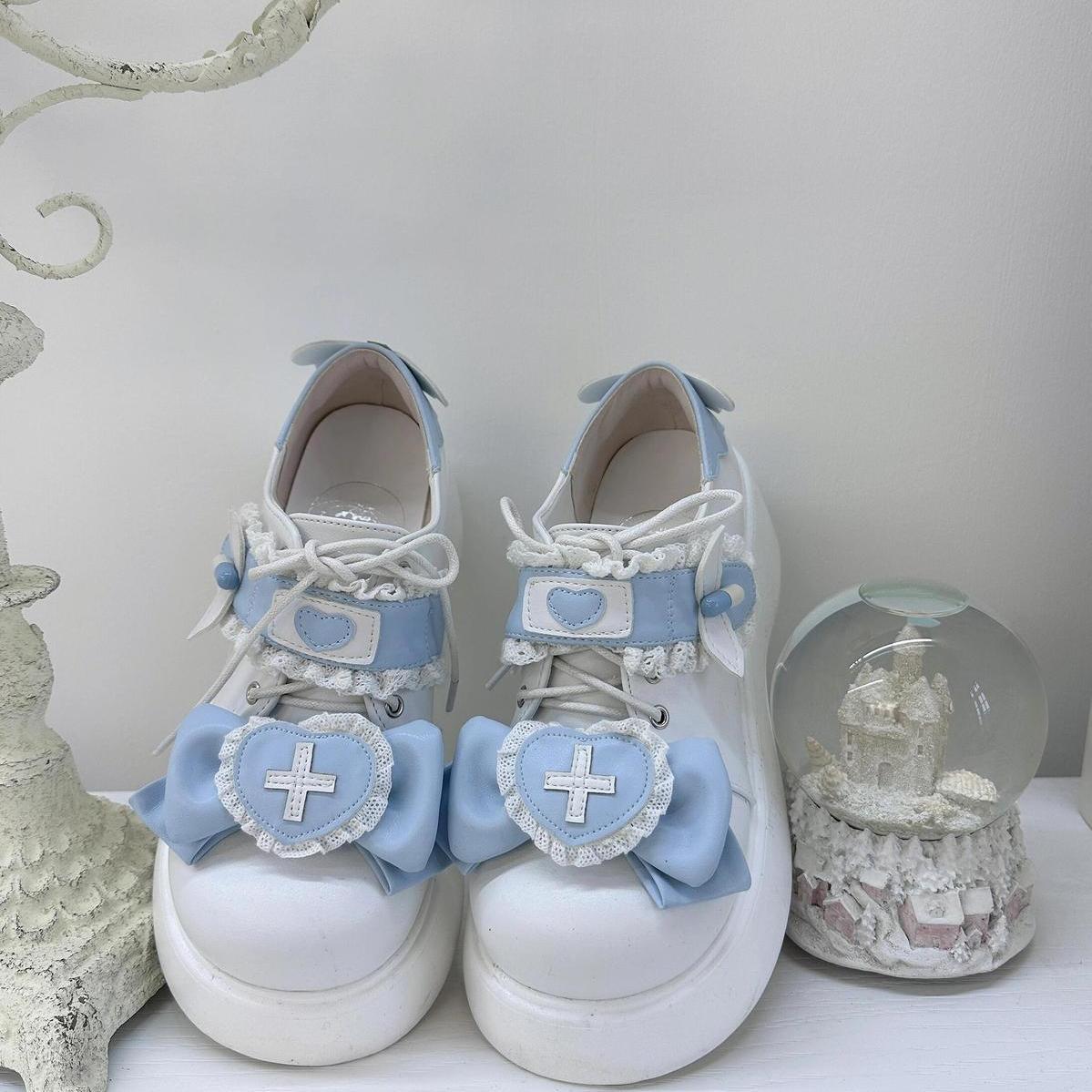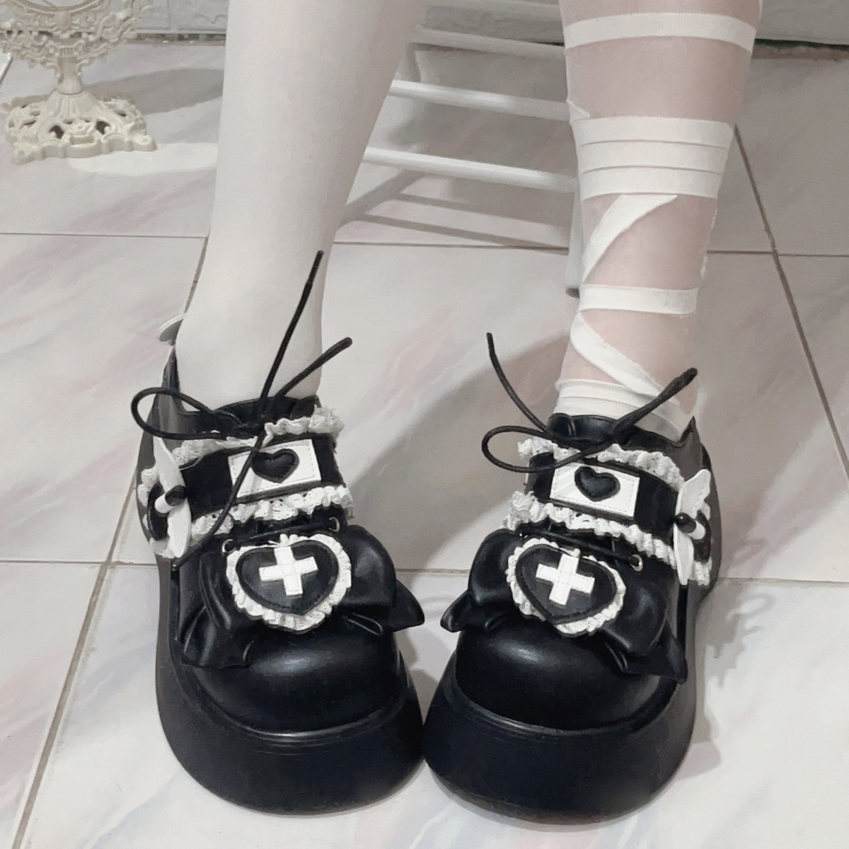 ロリータシューズ 厚底サンダル 厚底ロリータシューズレディース二次元2024秋冬水系リボンシングルシューズ