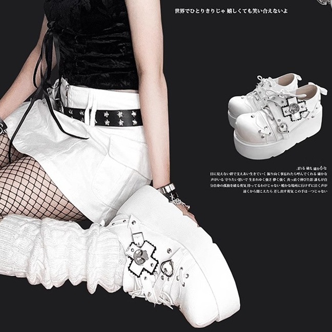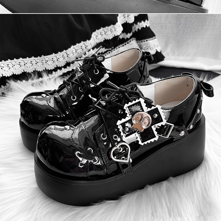 ロリータシューズ 厚底サンダル ゴシックパンク風厚底ロリータ靴甘くクールギャルロリータ靴小さい革靴秋冬高くなる