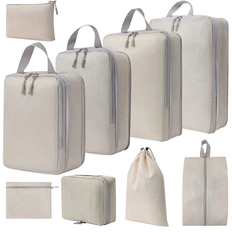 【9点セット】トラベルポーチ 圧縮 おしゃれ 圧縮袋 衣類 旅行 収納ポーチ バッグインバッグ 圧縮トラベルポーチ コンパクト 収納 撥水 仕切り ファスナー 2Way スペース節約