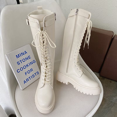 新品入荷 韓国 レトロ 百掛け英伦風 学院風 騎士ブーツ 厚底靴 太ヒールレースアップシューズロングブーツが復活!ロングブーツ30%までに制限