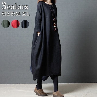 ナチュラルテイスト ゆったり ワンピース 秋冬 カジュアル バルーン 可愛い ラウンドネック