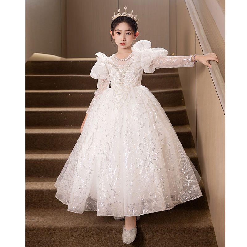ガールズドレス長袖プリンセスドレス子供誕生日女の子ピアノ演奏服秋