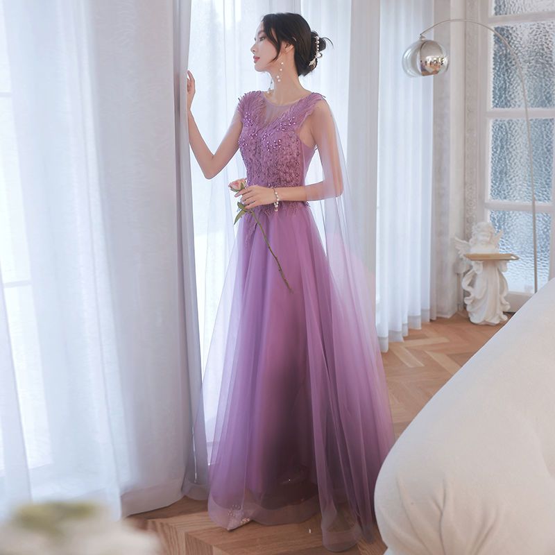 女性のためのドレス 2025 宴会気質ロングハイエンド学生美術試験紫色のドレス
