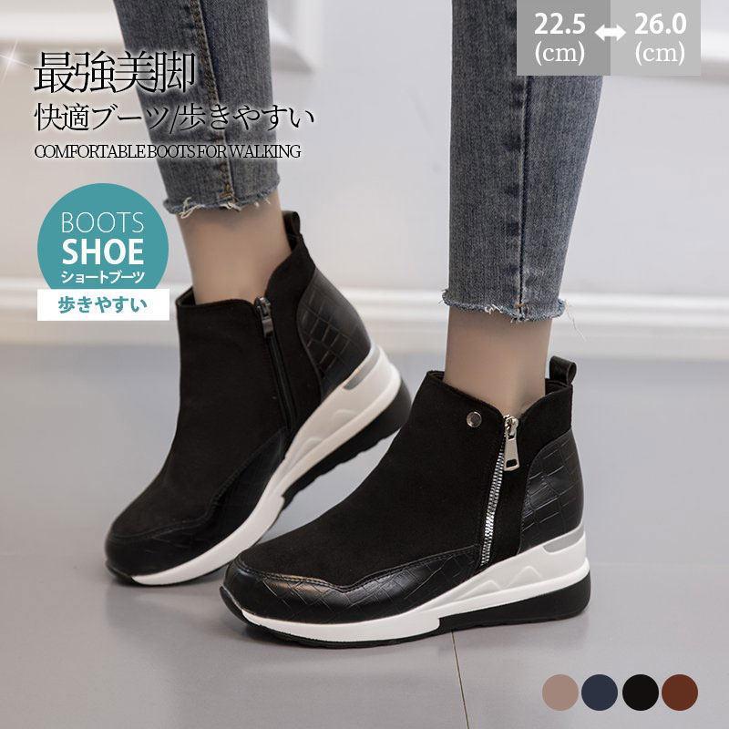 ショートブーツ レディース ブーティー ブーツ ウエッジソール 厚底 スニーカー 歩きやすい 6センチヒール 履きやすい 快適 ストレッチ 秋 冬 美脚 通勤30%までに制限