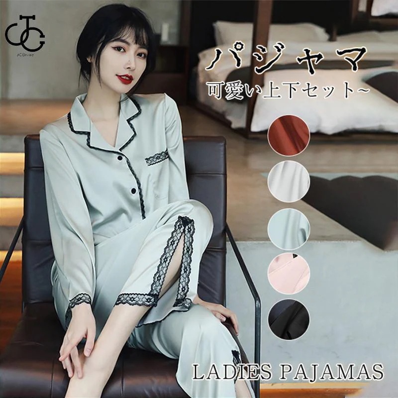パジャマ レディース 上下セット レース 花柄 春秋 長袖 前開き ルームウェア ロングパンツ 部屋着 寝間着 寝巻き おしゃれ 春服30%までに制限