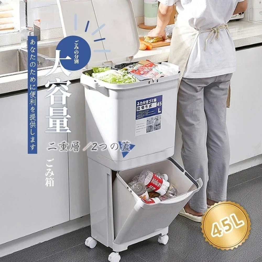 ゴミ箱 45L袋可 45リットル袋可 おしゃれ フロントオープン 分別 ダストボックス 積み重ね キッチン スリム シンプル 大容量 ふた付き 縦型 カウンター下選べる福袋