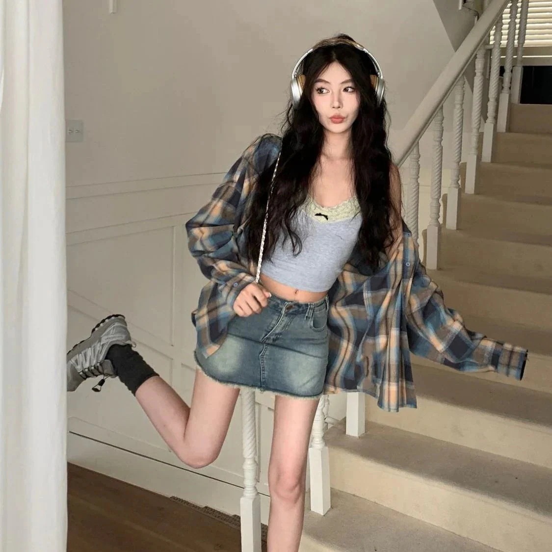 2025 春 夏 シャツ レディース ブラウス 長袖チェックシャツ トップス 韓国ファッション