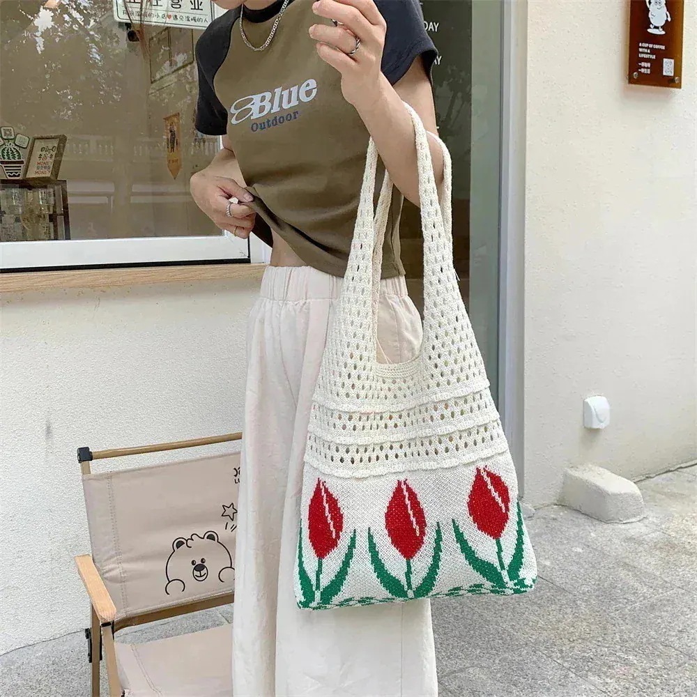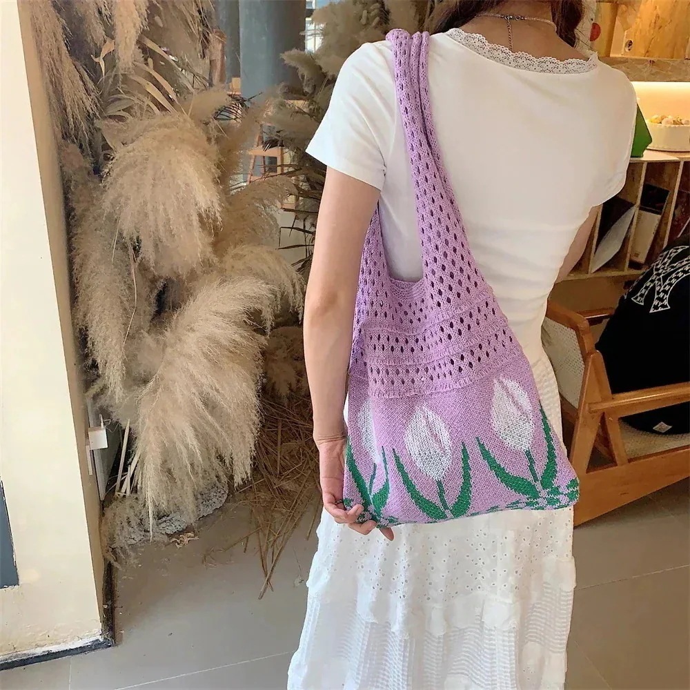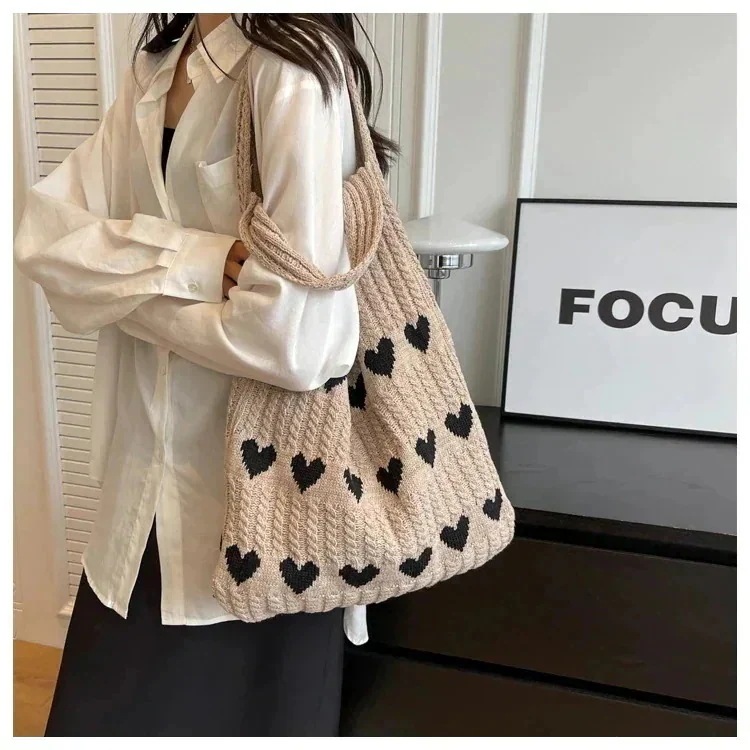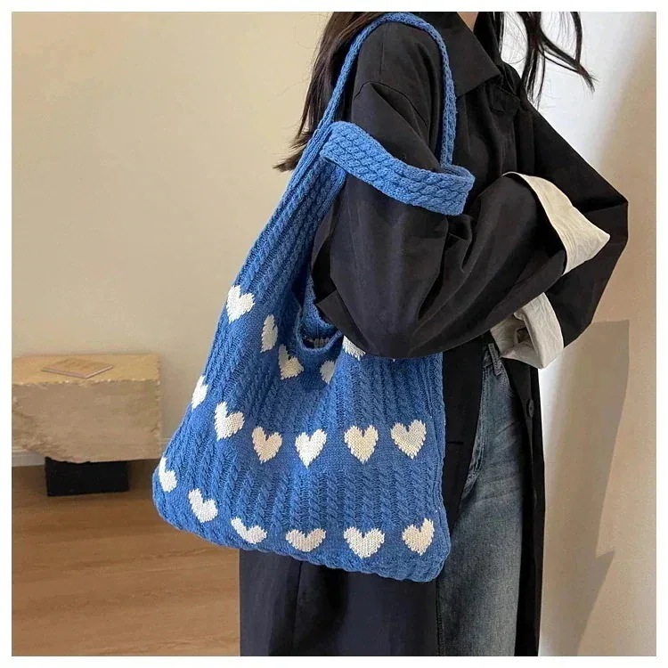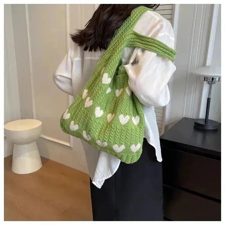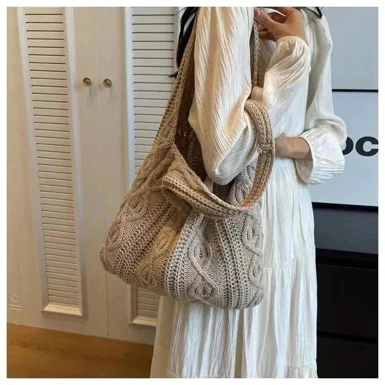 エコバッグ 人気 大容量 編みニットバッグ 可愛い ハンドバッグ 無地 軽量 肩掛け ニット バック カジュアル レディース トートバッグ
