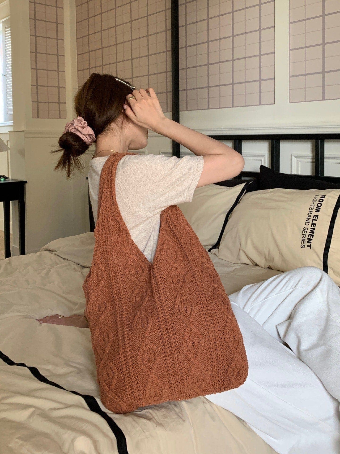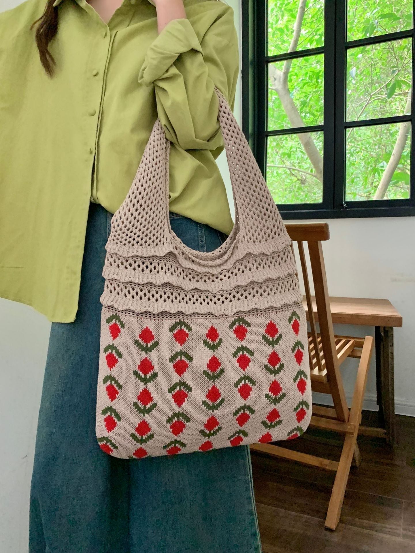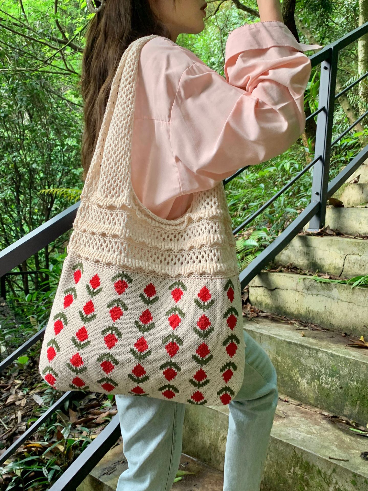エコバッグ 人気 大容量 編みニットバッグ 可愛い ハンドバッグ 無地 軽量 肩掛け ニット バック カジュアル レディース トートバッグ