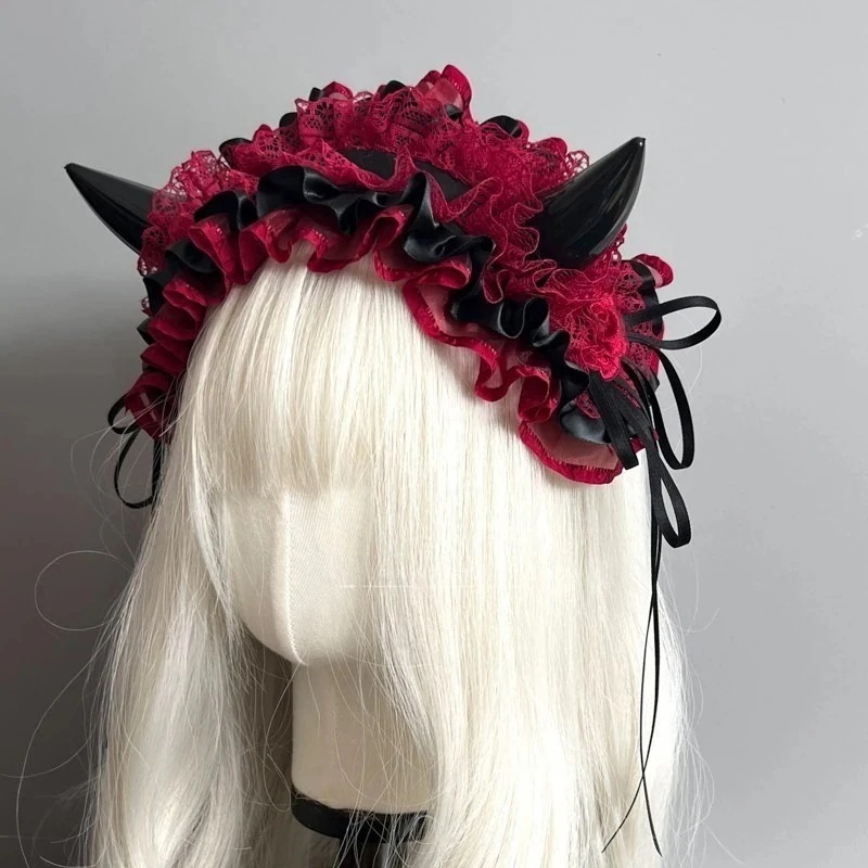 ハロウィンコスプレ ダーク 悪魔の角 ゴシック ヘアバンド レース ハロウィン ロリータ ヘアアクセサリー