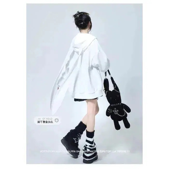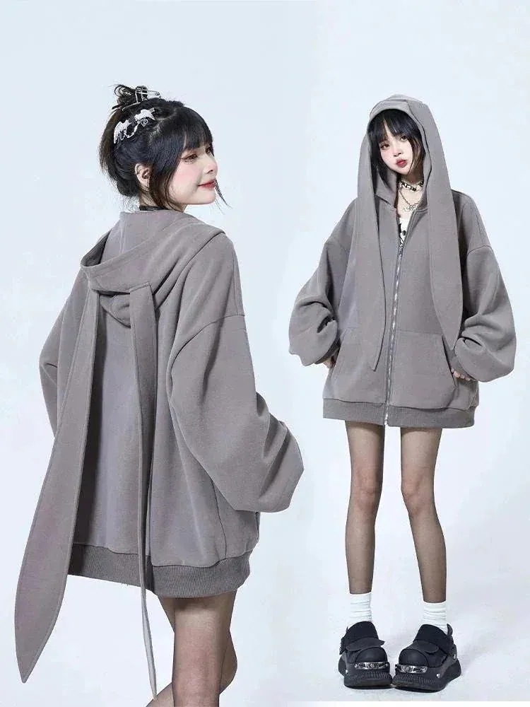 マウンテンパーカー 秋冬うさぎ耳パープルキャップ学生セーター女性ゆったり 大きいサイズ 着痩せ 体型カバー長袖カーディガンコートファッション 韓国ファッション