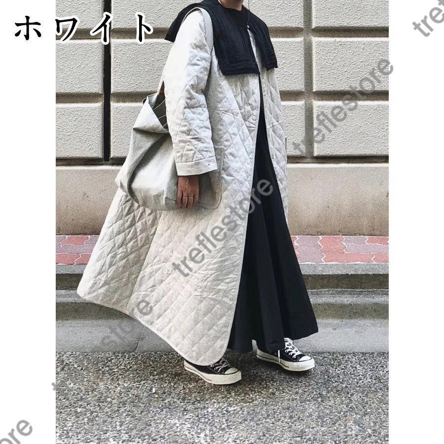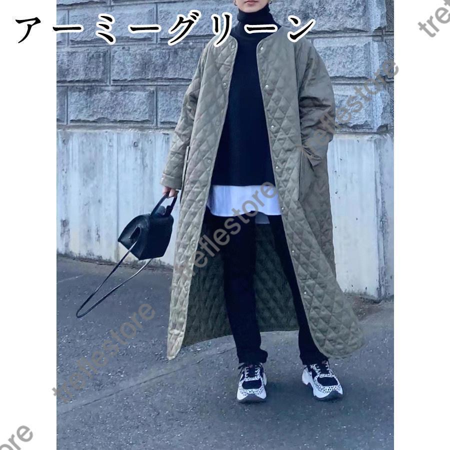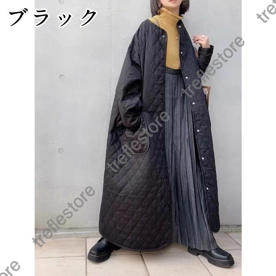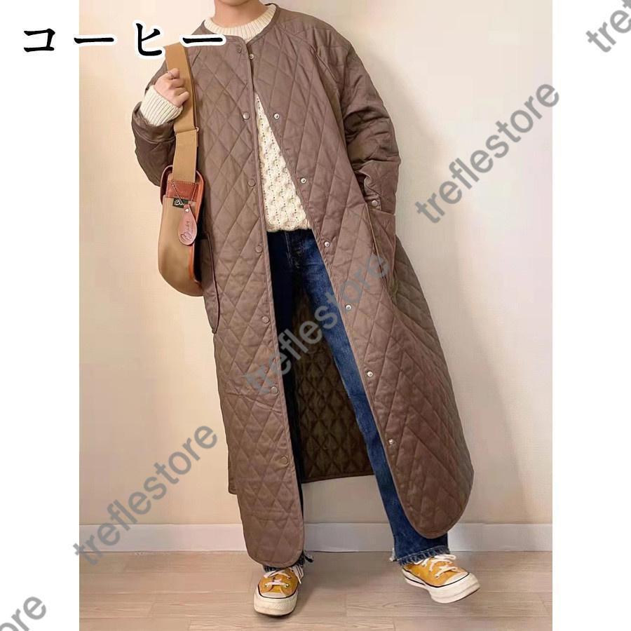 キルティングコート ダウンコート ロングコート ノーカラー 長袖アウター 中綿コート アウター 防寒 防風 30代40代50代 ポケット 秋冬コート 厚手 コート 大人