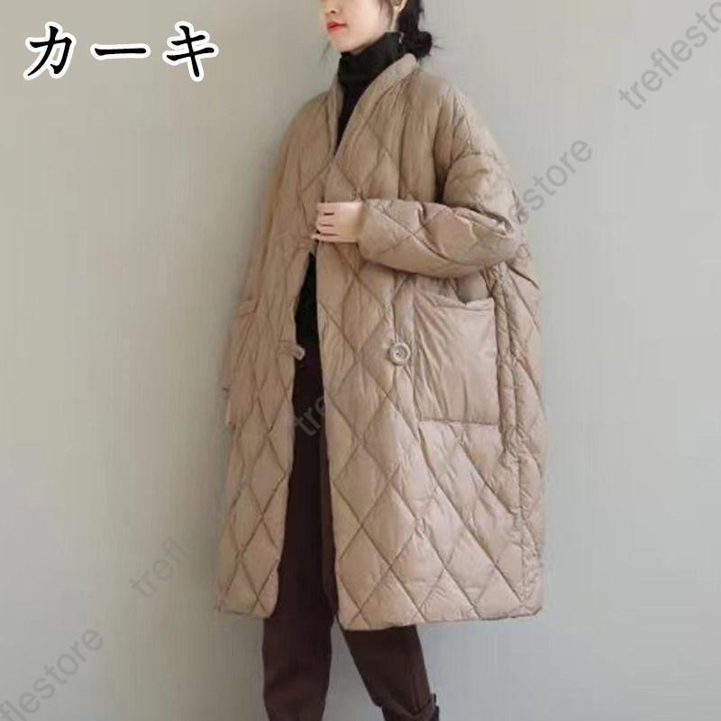 キルティングコート ロングコート レディース アウター 防寒 ダウン 中綿 秋 冬アウター 長袖 冬服 立てネック キルティング 大きめ ゆったり