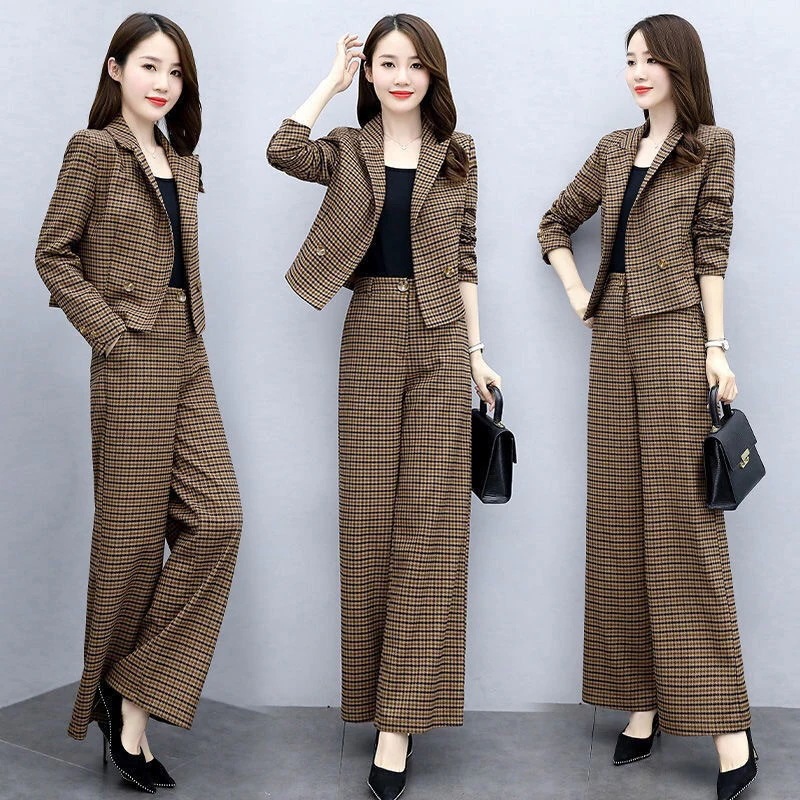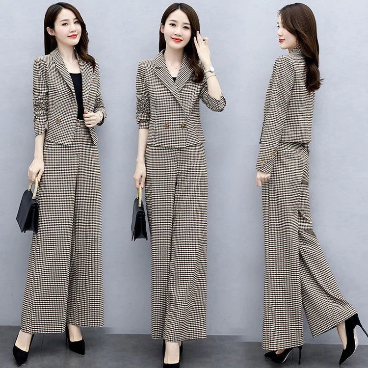 セットアップ レディース 40代 秋冬新作 長袖スーツジャケットチェック柄 ワイドパンツ 2点セット 通勤 フォーマル カジュアル オシャレ 上品 大きいサイズ