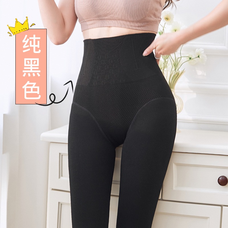 女性のアウターウェア用ハイウエスト腹部コントロールレギンス秋と冬の整形産後圧力増粘プラスフリースコットンオールインワン暖かいパンスト